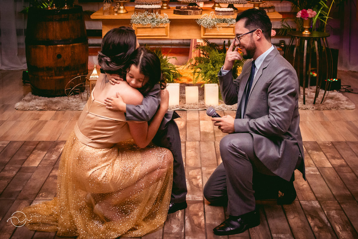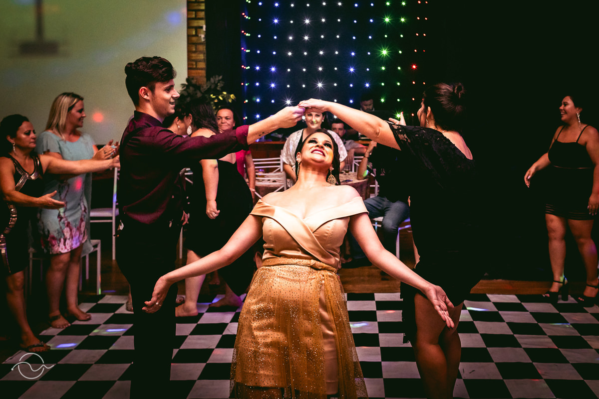 Várias histórias para fotografar e registrar – A homenagem do filho, que cantou uma música para a Ketlin, as palavras do esposo James, o presente e homenagem dos pais e claro, muita festa, muita dança e diversão! A felicidade da Ketlin estava estampada em seu rosto e havia um sentimento, o de dever cumprido, de quem enfrentou alguns perrengues para chegar ali e agora bastava comemorar a conquista!