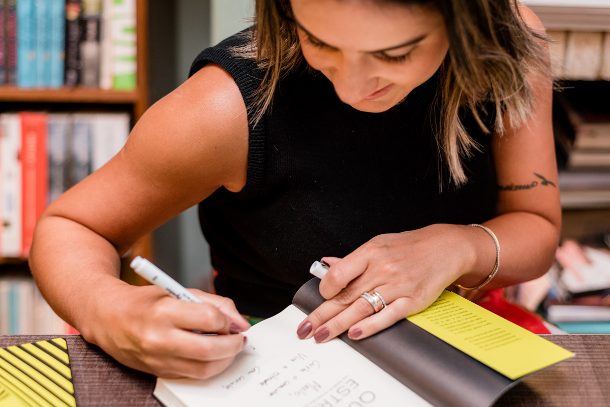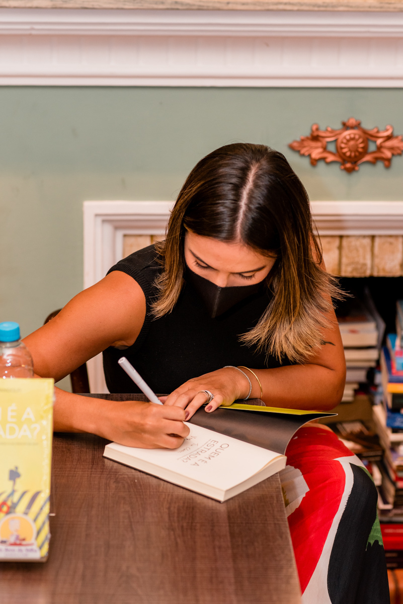 O evento aconteceu na livraria Do Arco da Velha, e foi sucesso! Diversas pessoas vieram adquirir seus livros e receber um autógrafo da Fê! Eu garanti o meu também (obviamente).