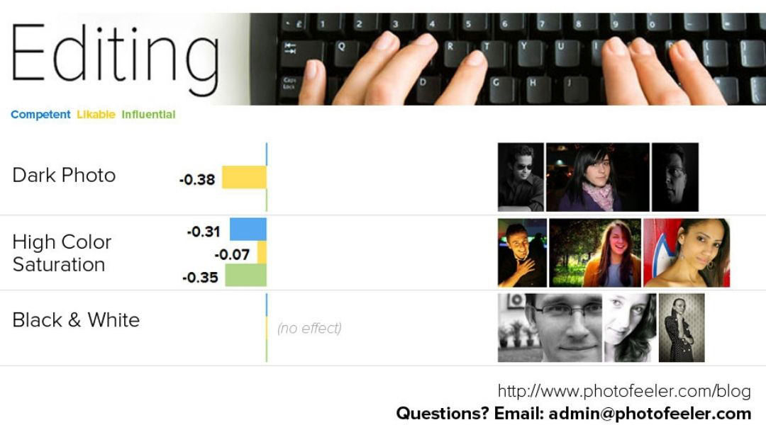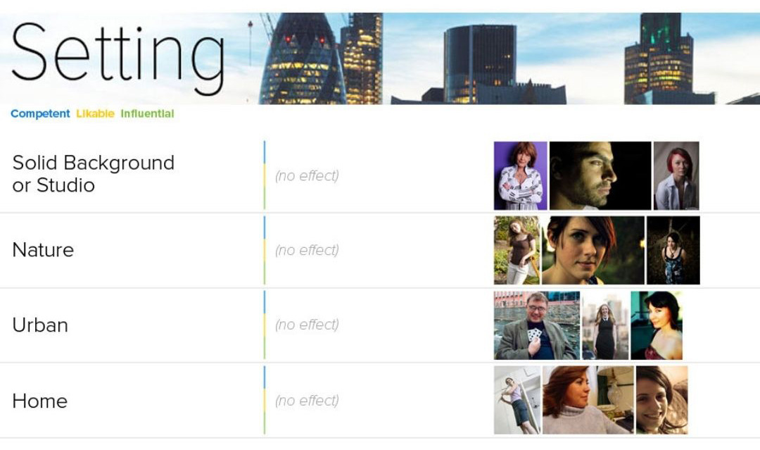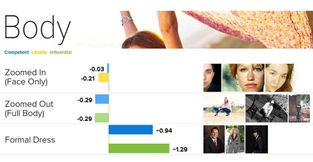 O estudo foi baseado em mais de 60.000 avaliações, seguindo apenas três métricas: Competência, Probabilidade e Influência percebidas para 800 fotos de perfil do banco de dados da Photofeeler.